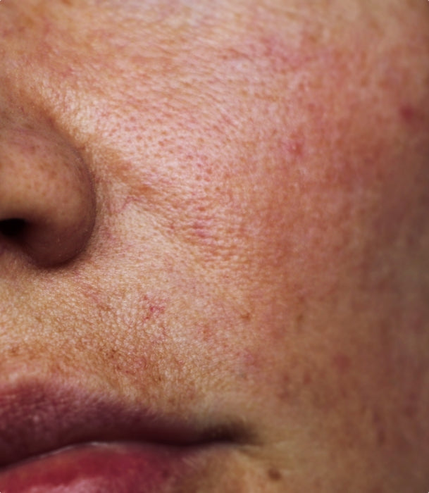 Rosacea is a common chronic skin disease which leads to redness, flushing and pimple-like spots. It most often affects the face of fair-skinned adults over the age of 30. Although it can look similar to acne, Rosacea is a different condition.
