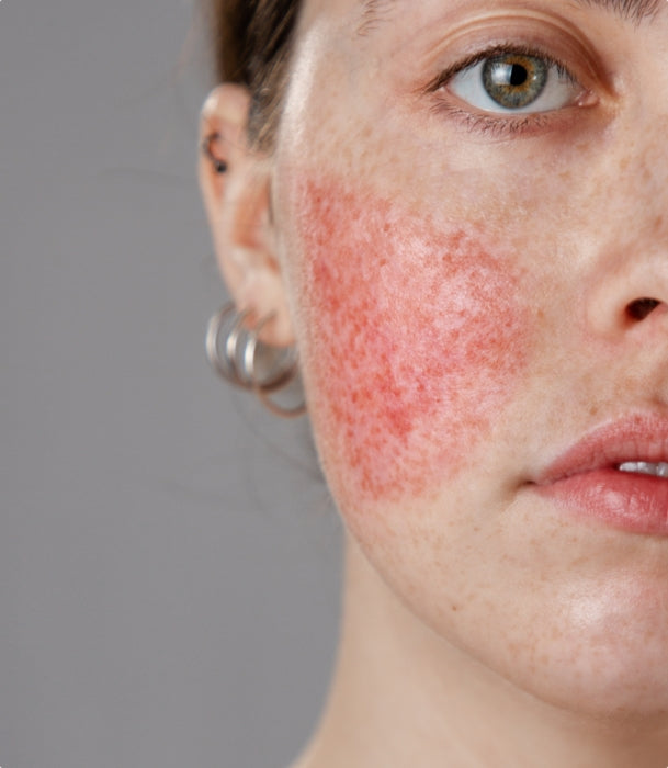 Some common triggers of Rosacea include spicy foods, hot beverages, sun exposure, extreme temperatures, alcohol, allergies, anger, stress, anxiety, inflammatory conditions such as hormone imbalances and some medications including corticosteroids and blood pressure.
